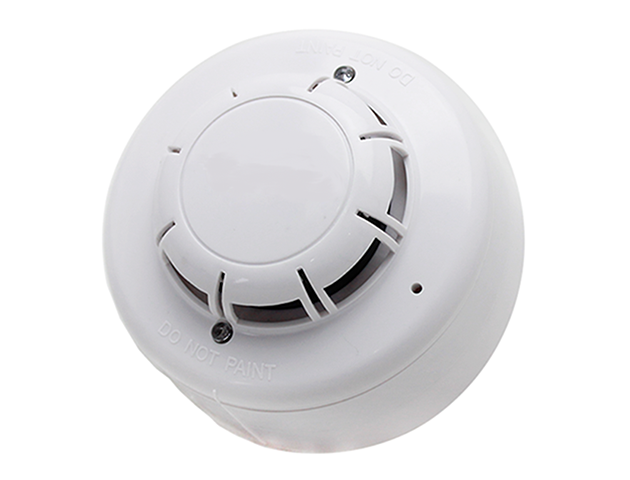 This heat detector takes fixed temperature or combination rate-of-rise and fixed temperature detection, suitable to any household or commercial applications. The detector is made up of an externally mounted thermistor with a specially designed cover that protects the thermistor while allowing maximum air flow. The thermistor reads the temperature from the air it takes in and transmits a signal representing the temperature to the panel. If the temperature reaches or exceeds the trip point or the temperature increase reaches or exceeds the rate-of-rise, the detector is triggered. The status LED lights in red and alarm signal is output. The detector is an ideal unit to detect rapid fire developments in houses, shops, hotels, restaurants, offices, schools, banks, libraries and etc.
