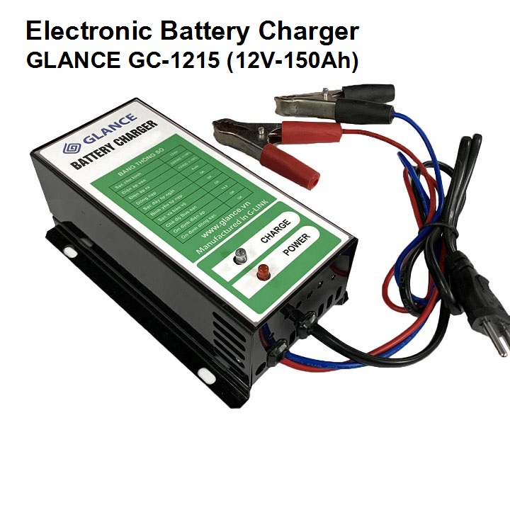 - Máy sạc ắc quy tự động 3 chế độ GLANCE Là thiết bị sử dụng để nạp điện cho bình ắc quy khô hoặc ắc quy nước có dung lượng từ 10Ah đến 150Ah. Với dòng sạc tương ứng với ắc quy. Sử dụng nguồn biến áp cao tần cho hiệu xuất cao lên đến 93%. Ổn định dòng sạc trong suốt quá trình sạc ắc quy.