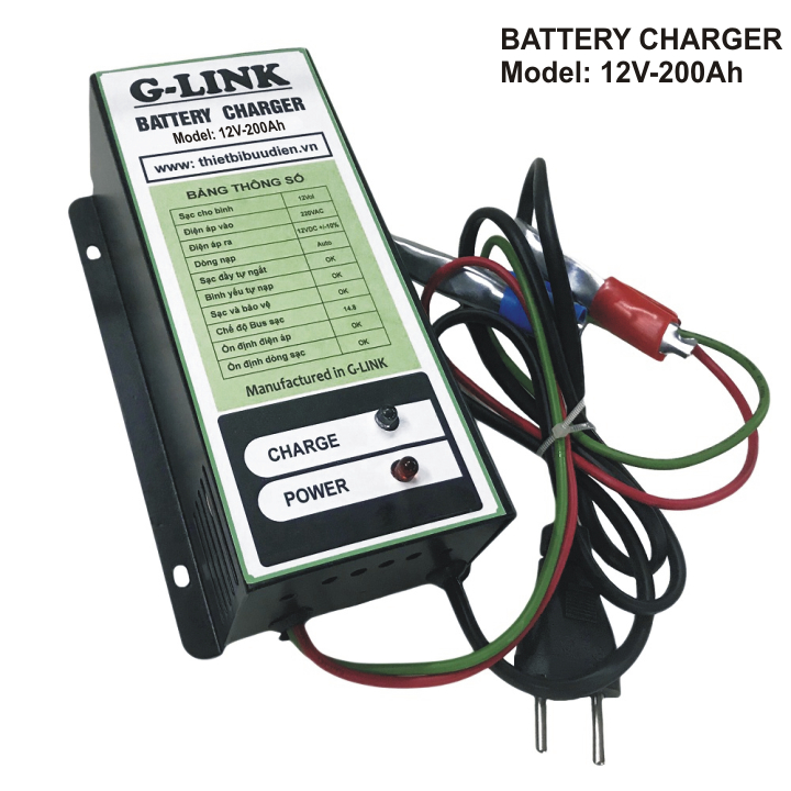 - Máy sạc ắc quy tự động 3 chế độ G-LINK Là thiết bị sử dụng để nạp điện cho bình ắc quy khô hoặc ắc quy nước có dung lượng từ 10Ah đến 200Ah. Với dòng sạc tương ứng với ắc quy. Sử dụng nguồn biến áp cao tần cho hiệu xuất cao lên đến 93%. Ổn định dòng sạc trong suốt quá trình sạc ắc quy.