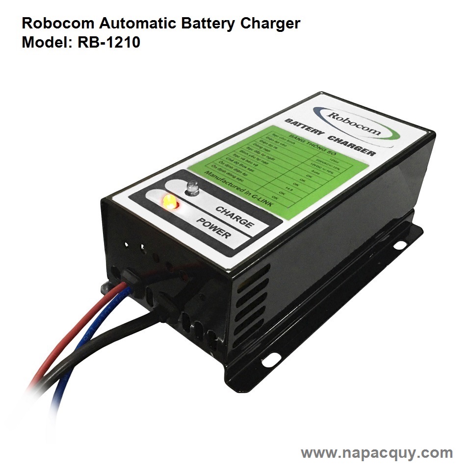 - Máy sạc ắc quy tự động 3 chế độ Robocom Là thiết bị sử dụng để nạp điện cho bình ắc quy khô hoặc ắc quy nước có dung lượng từ 10Ah đến 100Ah. Với dòng sạc tương ứng với ắc quy. Sử dụng nguồn biến áp cao tần cho hiệu xuất cao lên đến 93%. Ổn định dòng sạc trong suốt quá trình sạc ắc quy.
