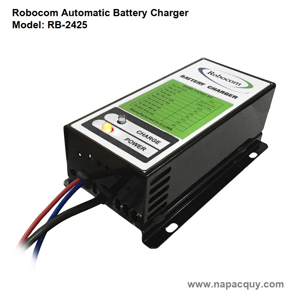 - Máy sạc ắc quy tự động 3 chế độ Robocom Là thiết bị sử dụng để nạp điện cho bình ắc quy khô hoặc ắc quy nước có dung lượng từ 10Ah đến 200Ah. Với dòng sạc tương ứng với ắc quy. Sử dụng nguồn biến áp cao tần cho hiệu xuất cao lên đến 93%. Ổn định dòng sạc trong suốt quá trình sạc ắc quy.