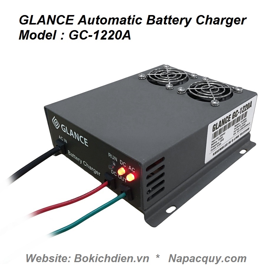 - Máy sạc ắc quy tự động 3 chế độ GLANCE Là thiết bị sử dụng để nạp điện cho bình ắc quy khô hoặc ắc quy nước có dung lượng từ 10Ah đến 100Ah. Với dòng sạc tương ứng với ắc quy. Sử dụng nguồn biến áp cao tần cho hiệu xuất cao lên đến 93%. Ổn định dòng sạc trong suốt quá trình sạc ắc quy.