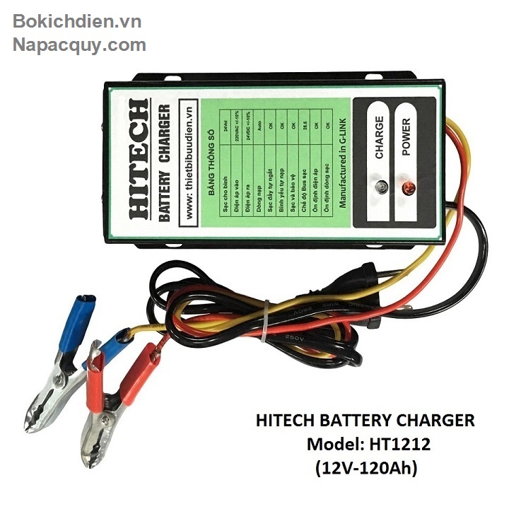 - Máy sạc ắc quy tự động 3 chế độ HITECH Là thiết bị sử dụng để nạp điện cho bình ắc quy khô hoặc ắc quy nước có dung lượng từ 10Ah đến 120Ah. Với dòng sạc tương ứng với ắc quy. Sử dụng nguồn biến áp cao tần cho hiệu xuất cao lên đến 93%. Ổn định dòng sạc trong suốt quá trình sạc ắc quy.