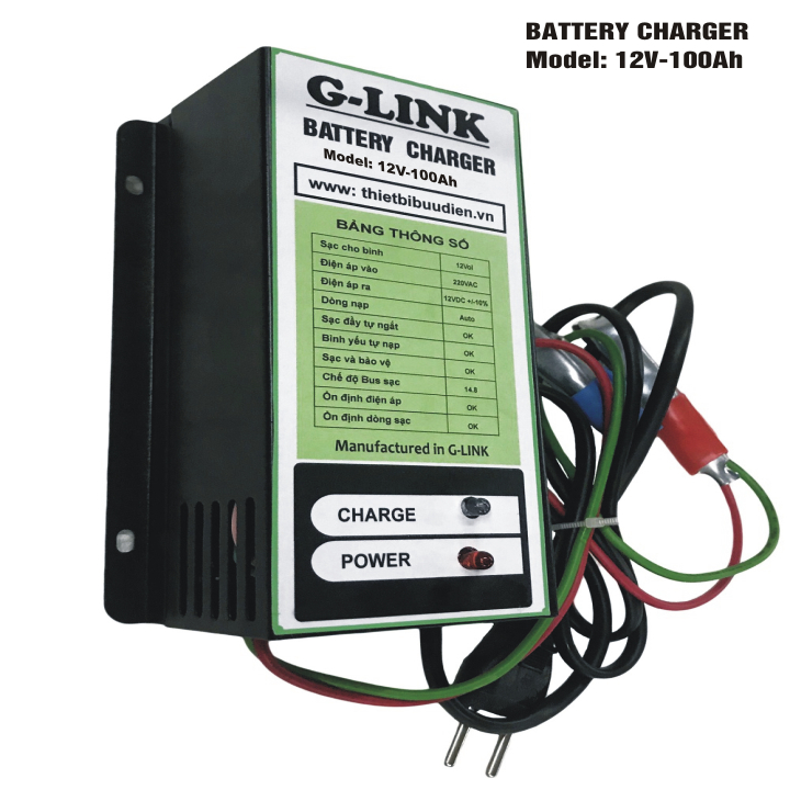 - Máy sạc ắc quy tự động 3 chế độ G-LINK Là thiết bị sử dụng để nạp điện cho bình ắc quy khô hoặc ắc quy nước có dung lượng từ 10Ah đến 100Ah. Với dòng sạc tương ứng với ắc quy. Sử dụng nguồn biến áp cao tần cho hiệu xuất cao lên đến 93%. Ổn định dòng sạc trong suốt quá trình sạc ắc quy.